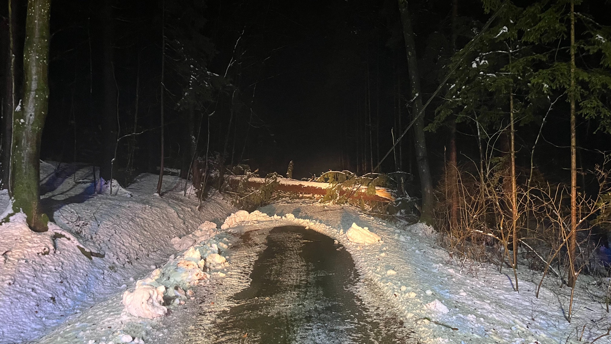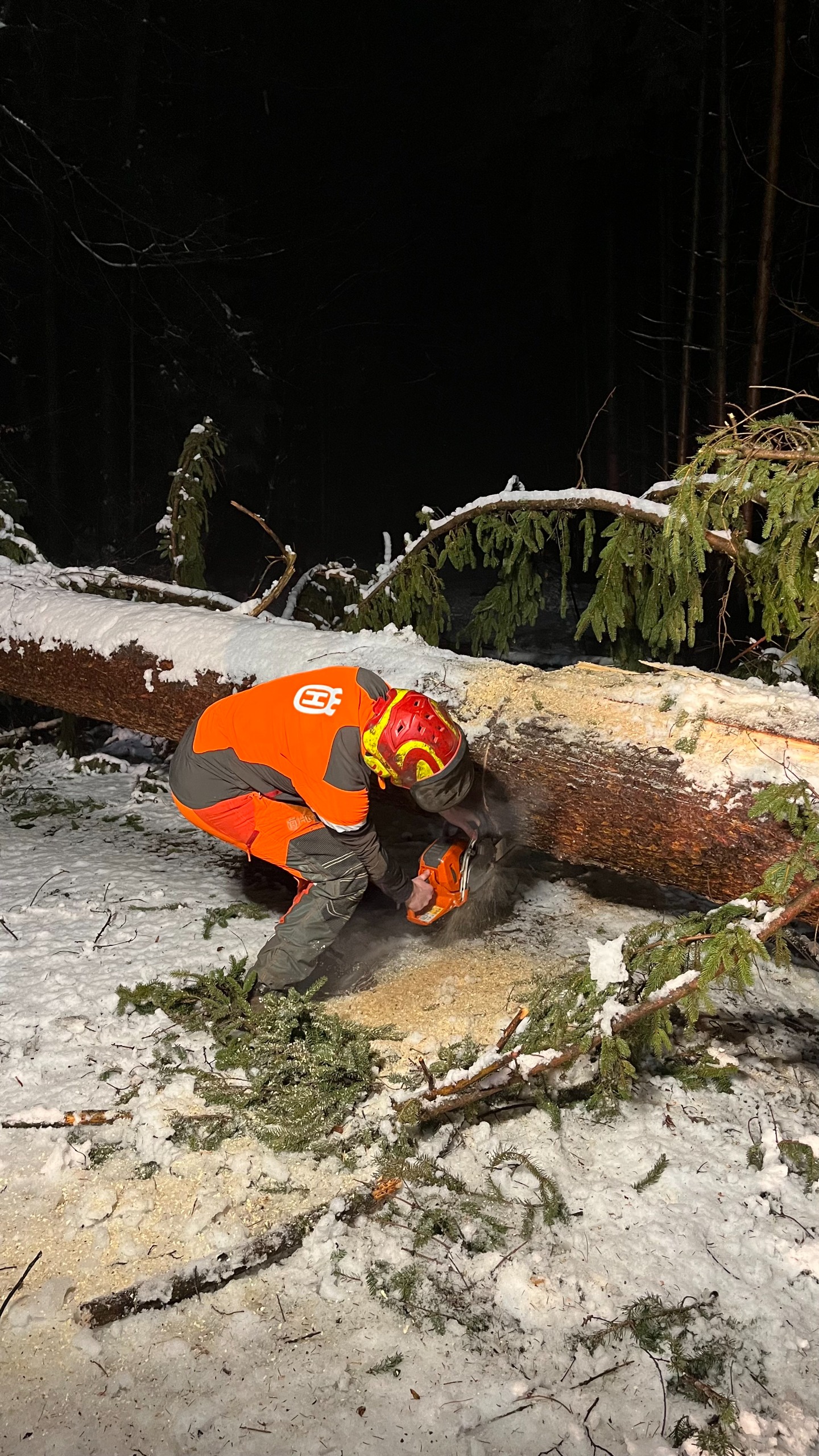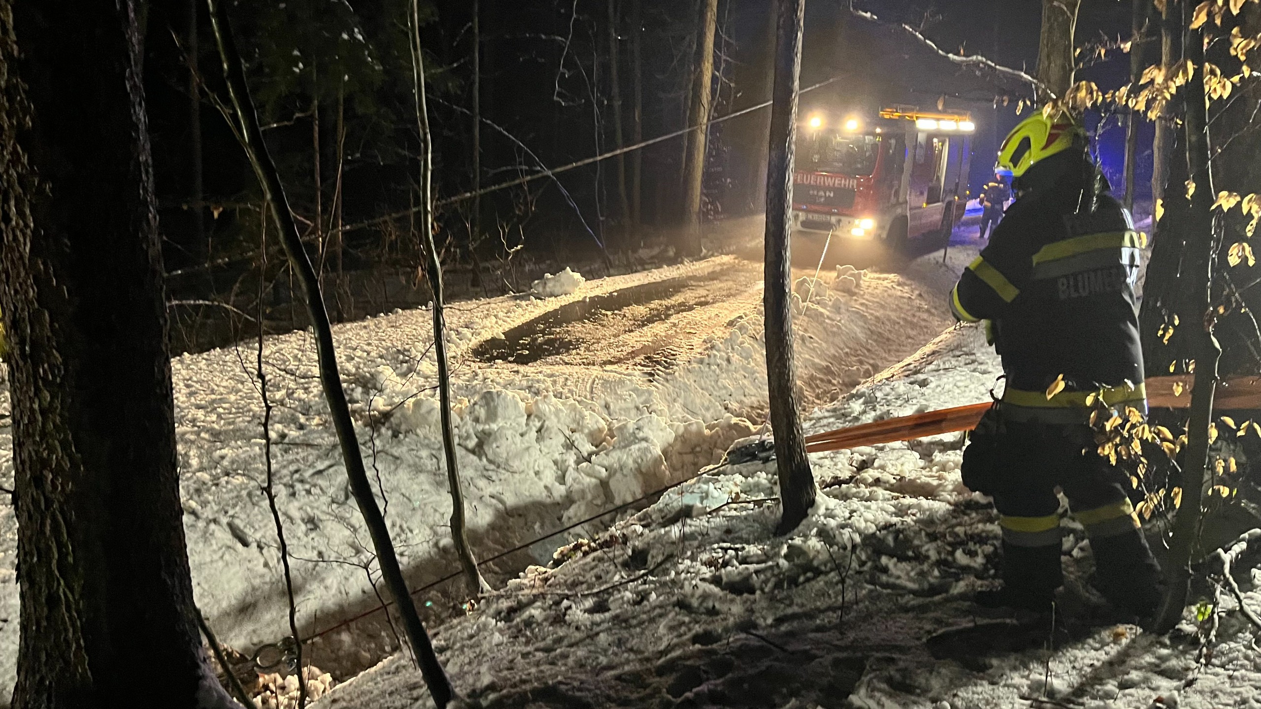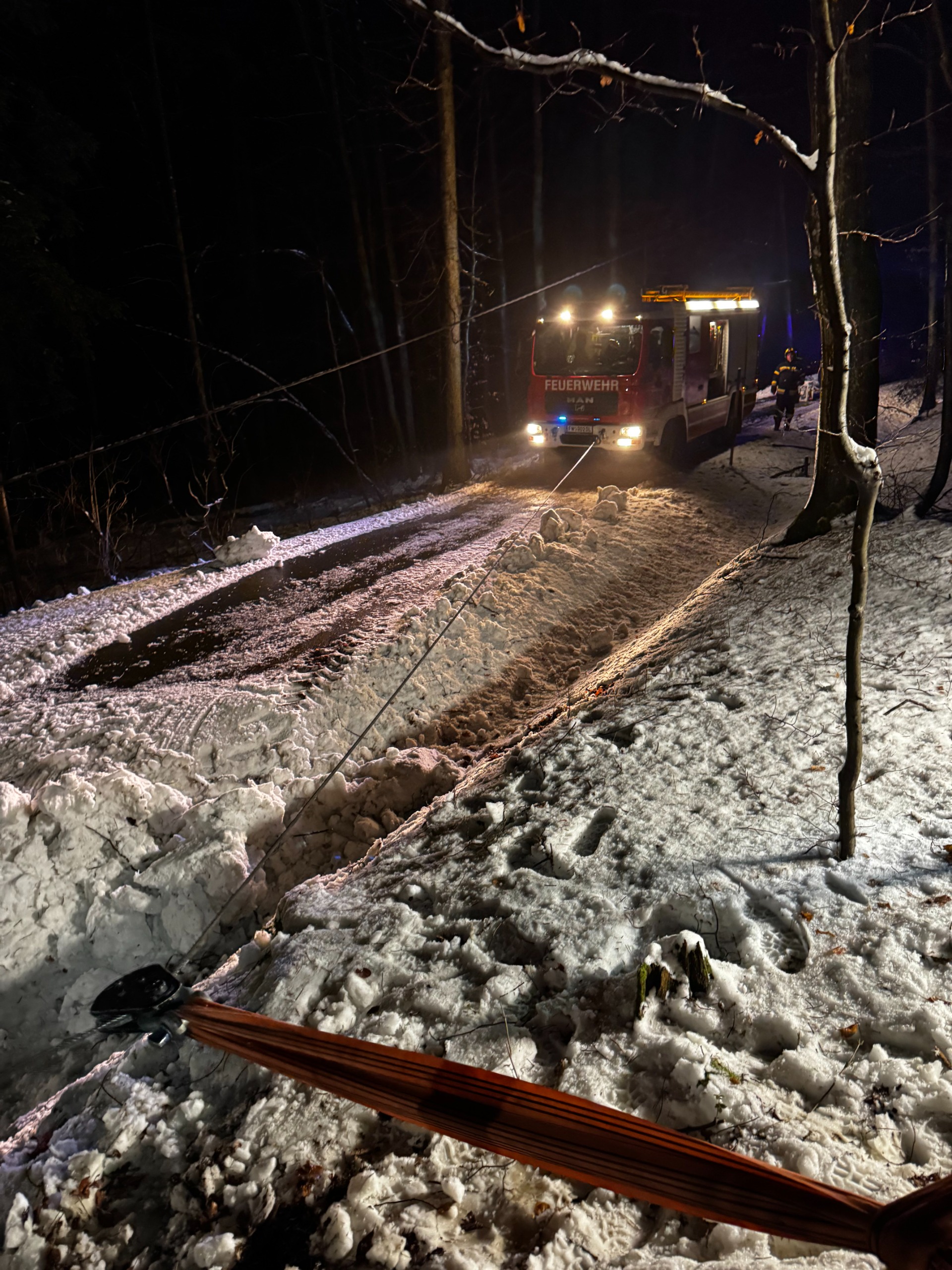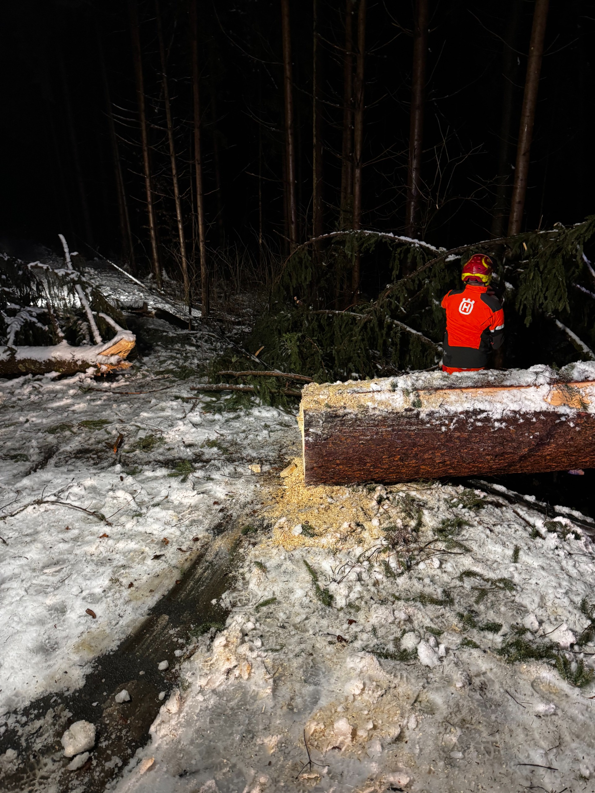 In den frühen Morgenstunden des 21. Februars 2026 wurde die FF Blumegg Teipl von Mitarbeitern des Winterdiensts mit der Meldung "Baum auf Stromleitung" alarmiert.