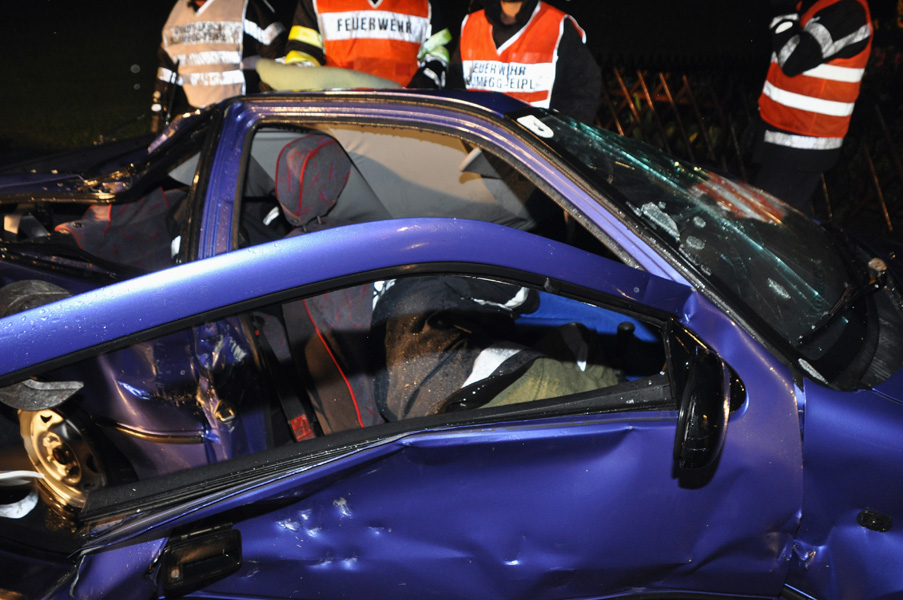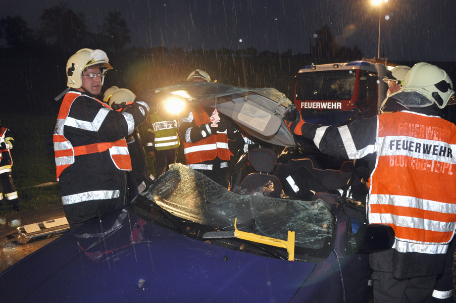 | Danach konnten die Personen aus dem Fahrzeug befreit und mit Hilfe einer