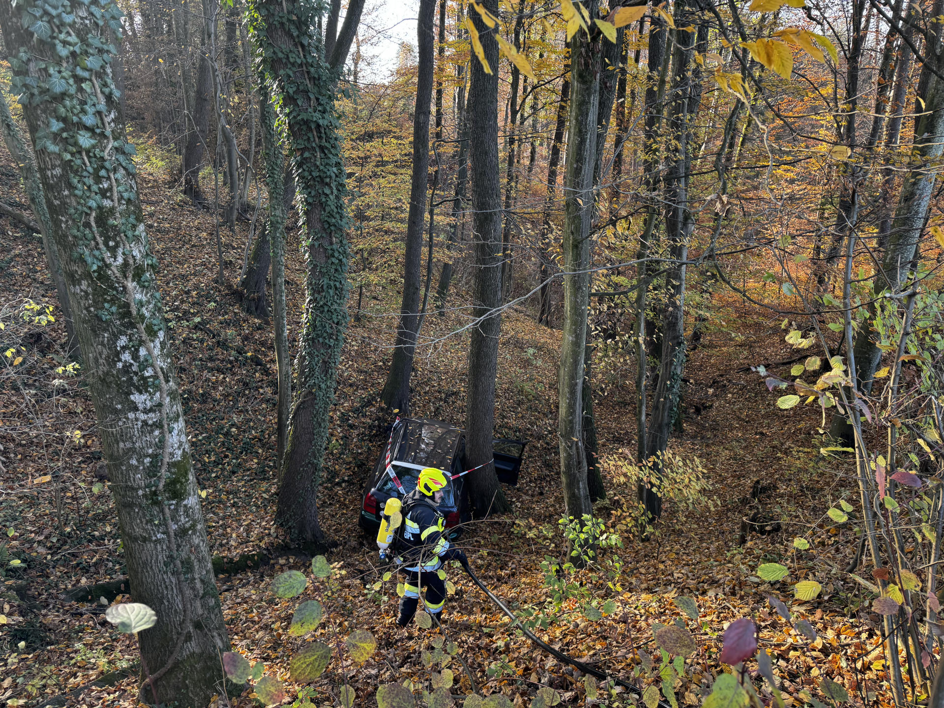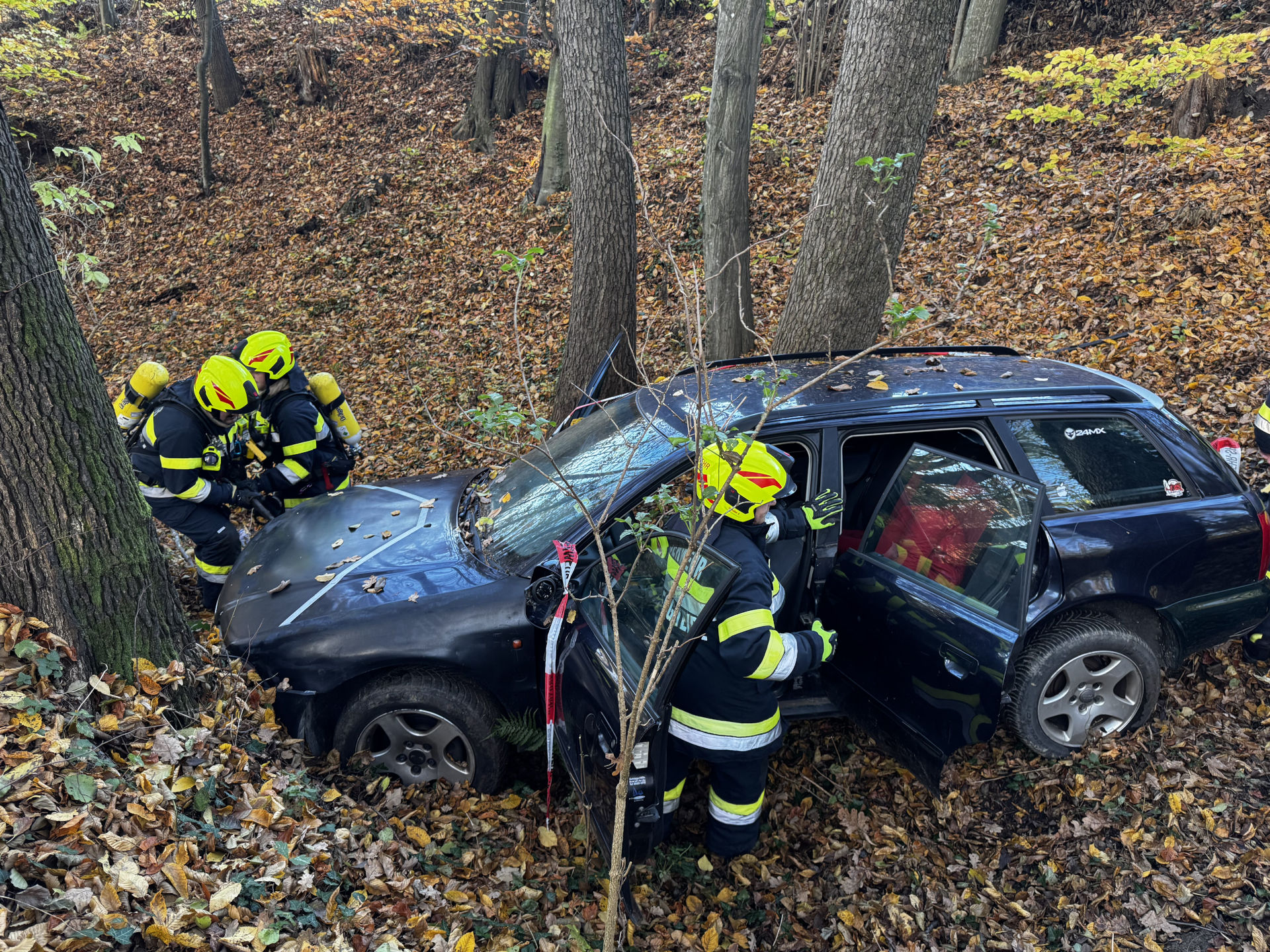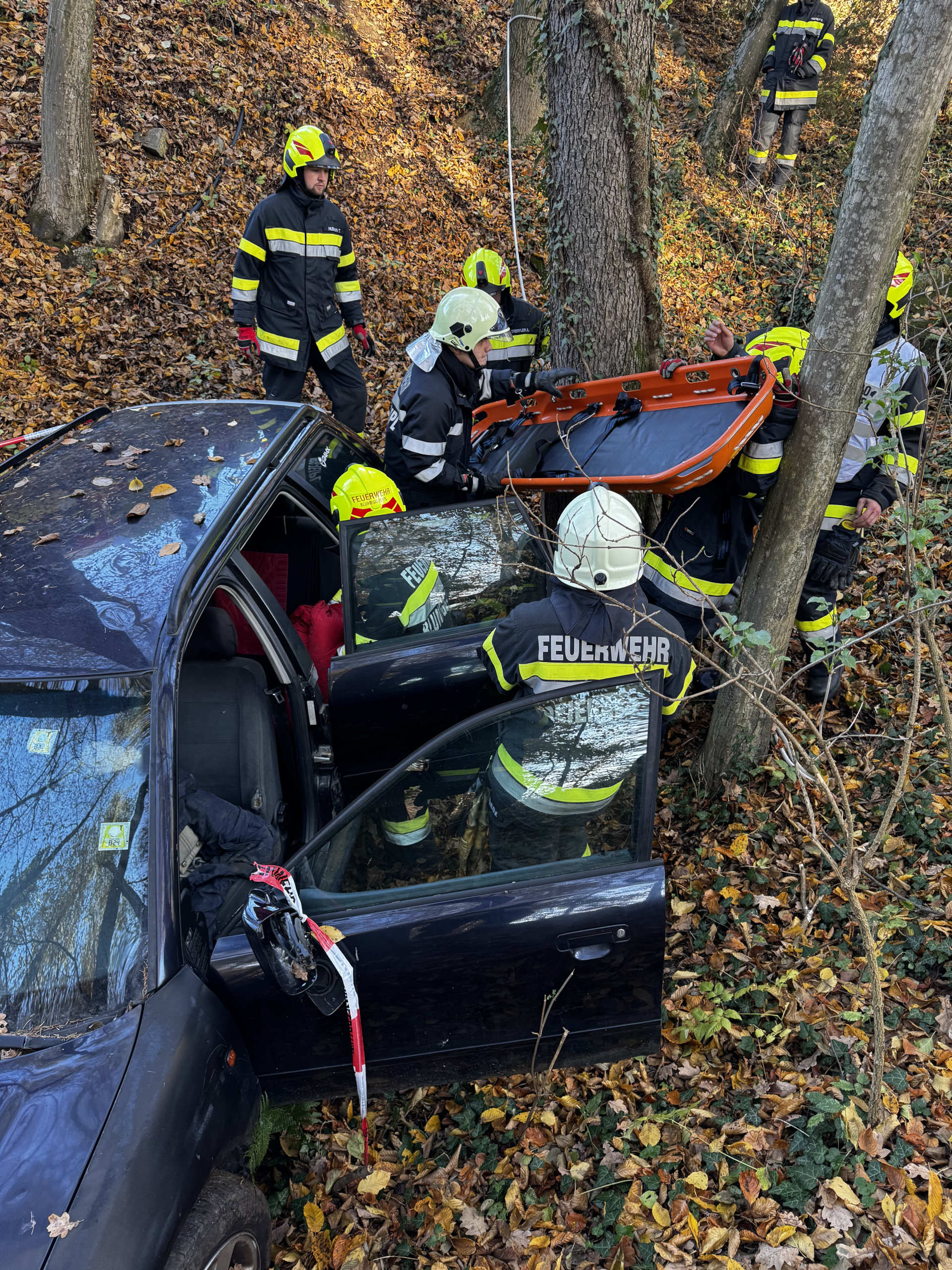 Das diesjährige Einsatzszenario war ein Verkehrsunfall mit eingeklemmter Person in schwierigem Gelände. Da das Fahrzeug über eine steile Böschung abgestürzt war gab es einige Herausforderungen.