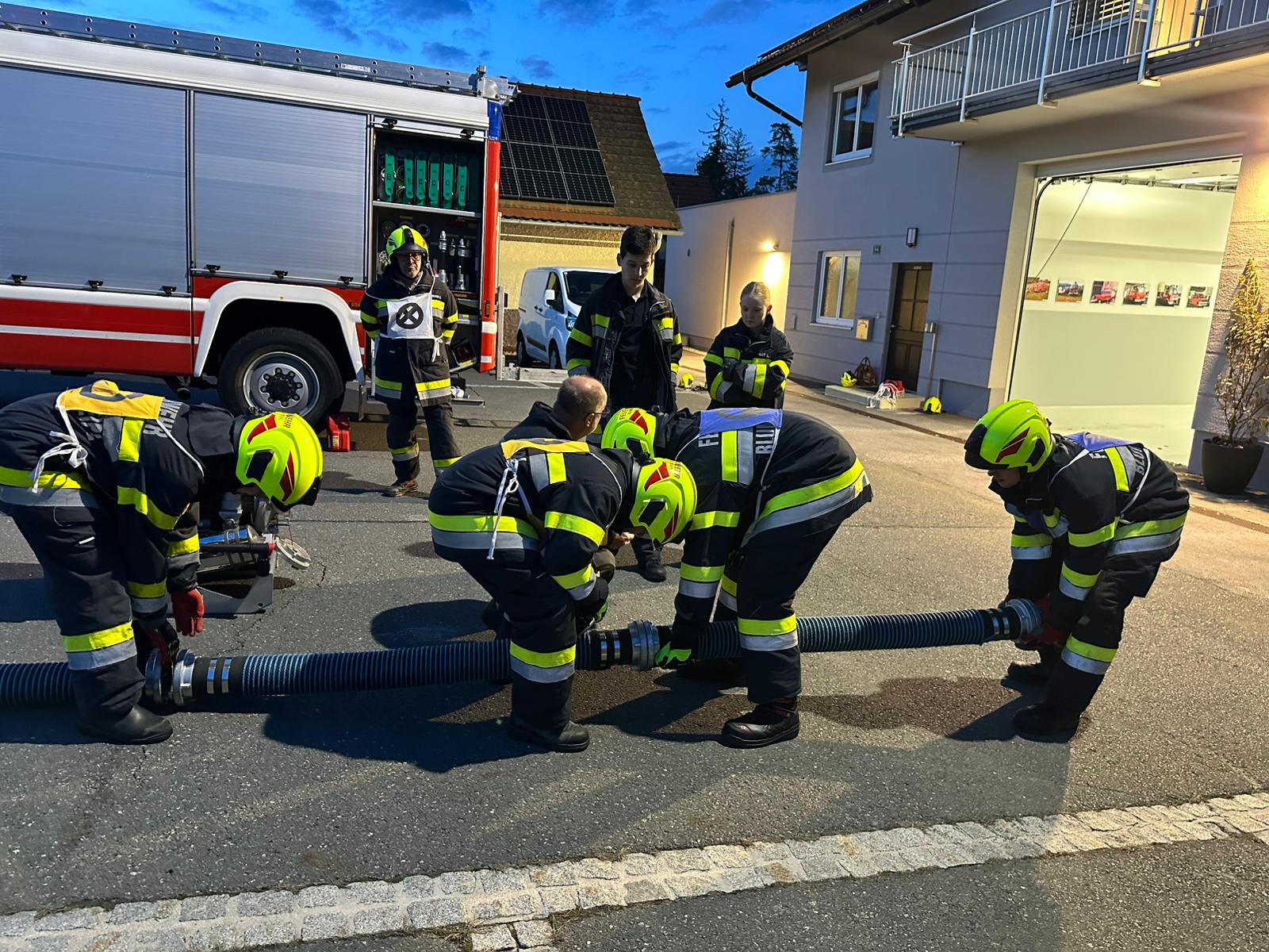 Dabei wurde vor allem mit den jungen Kameradinnen und Kameraden der Aufbau der Löschleitung trainiert und gefestigt.