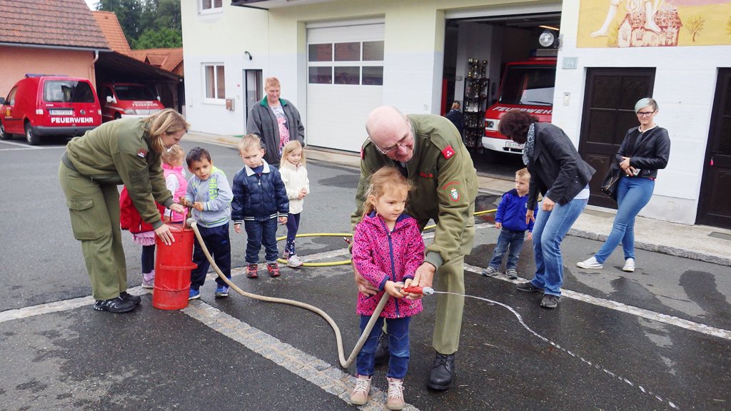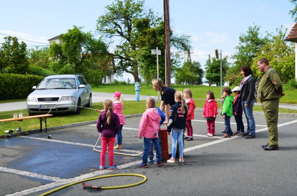 Am 18. und 20. Mai 2016 lud die freiwillige Feuerwehr Blumegg Teipl die Kinder und Pädagoginnen des Kindergarten Launeggs zu Kennenlerntagen für die bevorstehende Räumungsübung ein. Die Kinder bekamen in diesem Rahmen die Möglichkeit, die Gerätschaften kennenzulernen und auch selber auszuprobieren. Es wurde insbesondere darauf Wert gelegt, den Kindern die Atemschutzausrüstung näher zu bringen und somit zu zeigen, dass unter der Atemschutzmaske ein Feuerwehrmann versteckt ist. Weiters bekamen die Kinder die Möglichkeit die Kübelspritze auszuprobieren. Hier mussten die Kinder ihr Können beim Zielspritzen und Pumpen unter Beweis stellen. Nach der großen Aufregung wurde auch für das leibliche Wohl der jungen Gäste gesorgt.